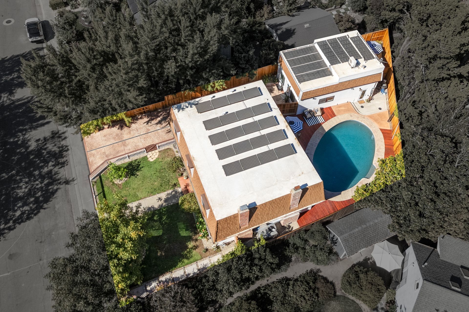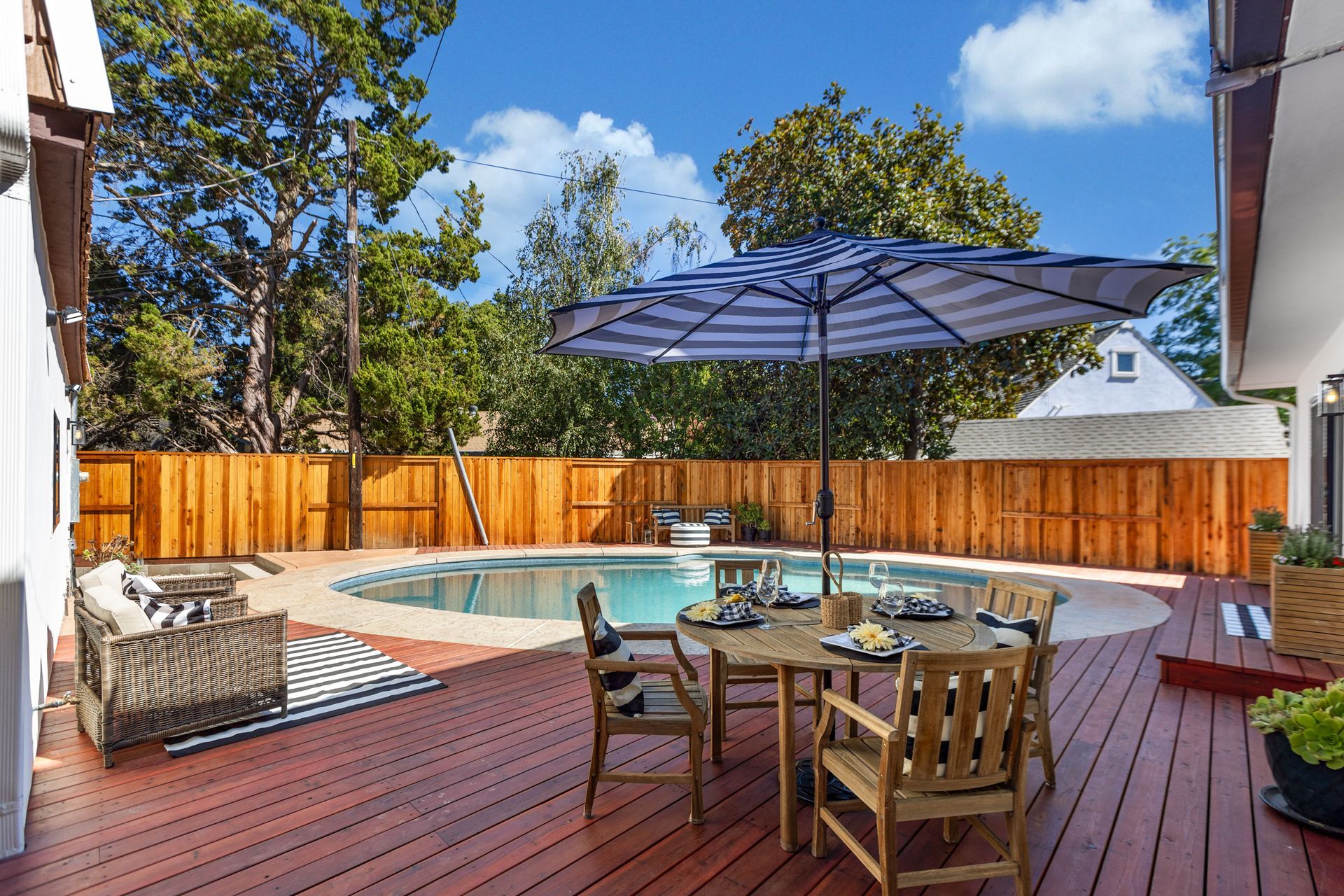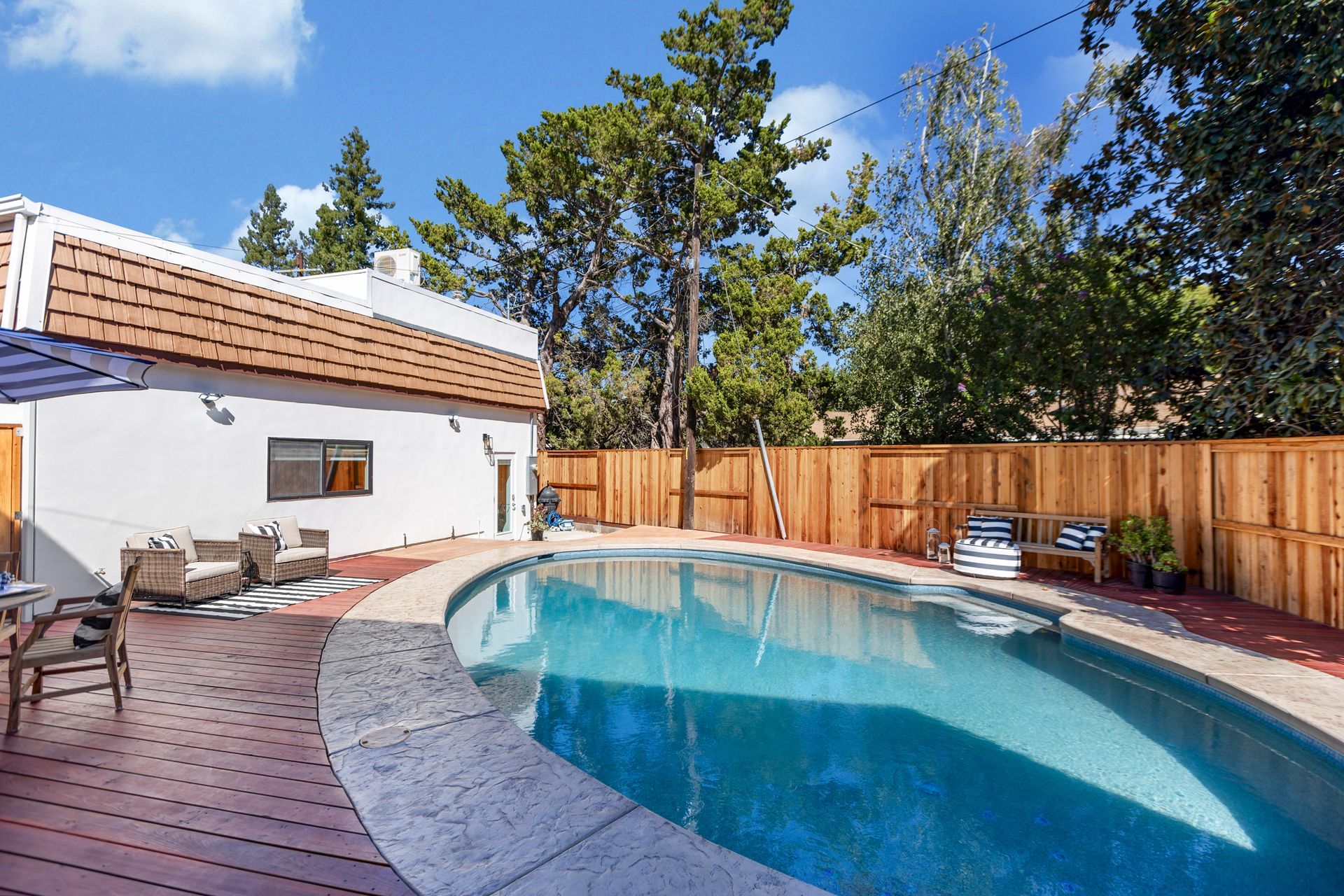 - Custom-built redwood pool decking and backyard fencing