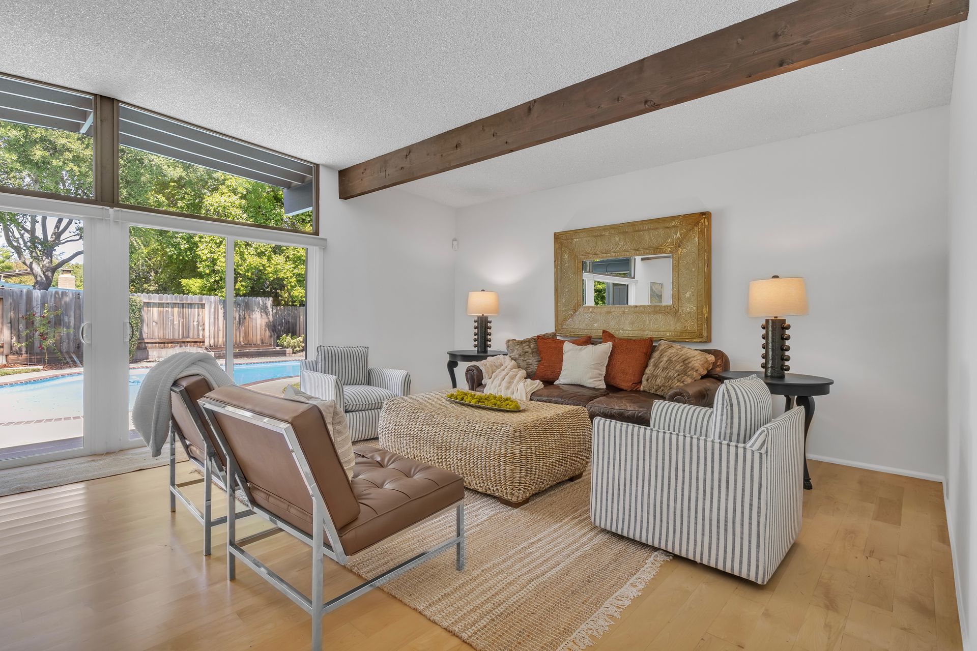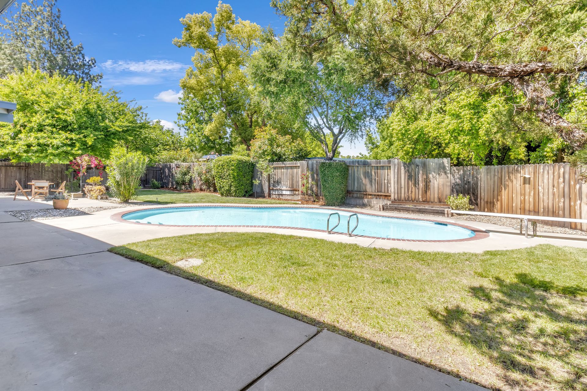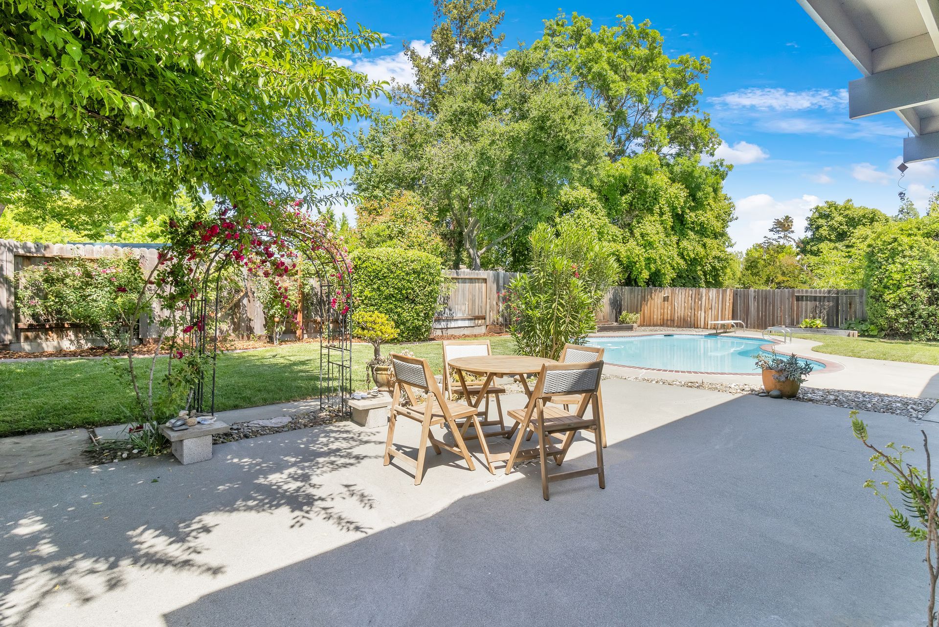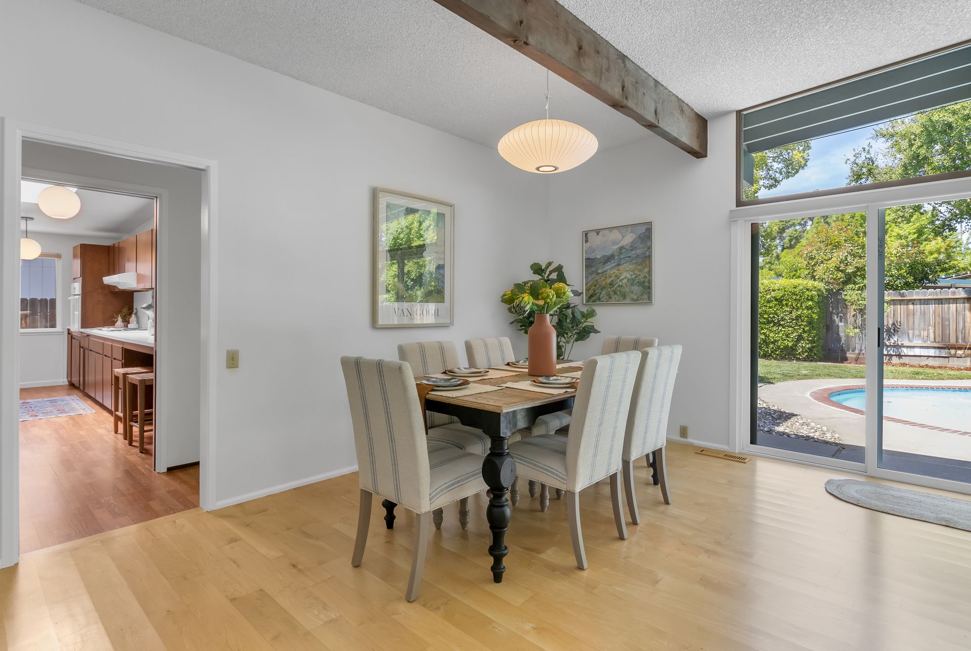 century modern style, this rare “Stretch Streng” offers an expanded floor plan with the perfect blend of architectural significance and retro charm. Set on a generous 0.23 acre lot, this 5 bed, 2.5 bath home delivers 2,566 square feet of thoughtfully designed living space filled with character, light, and indoor-outdoor connection. True to Streng design, the home showcases clean lines, floor-to-ceiling windows, and skylights that flood the interiors with natural light. A statement starburst fixture welcomes you into the entry, setting the tone for the home’s vintage flair. Inside, you’ll find both formal living and family rooms, anchored by a raised hearth fireplace that creates a warm, nostalgic focal point. The retro-inspired galley kitchen embraces its mid-century roots with timeless charm, while multiple access points seamlessly connect indoor spaces to the outdoors - ideal for California living. The spacious primary suite features double closets, and secondary bedrooms are finished with oak hardwood flooring. Step outside to your private backyard retreat, complete with a large in-ground swimming pool with new tile, multiple patios for lounging and entertaining, and raised planter beds ready for gardening. A wood front porch adds to the home’s curb appeal, while the attached two-car garage and large utility/laundry room provide everyday functionality. Perfectly located within walking distance to Willett and Cesar Chavez Elementary, biking distance to UC Davis, and just minutes from downtown, shopping, and freeway access - this is a rare opportunity to own a true piece of Davis architectural history with added space and flexibility.