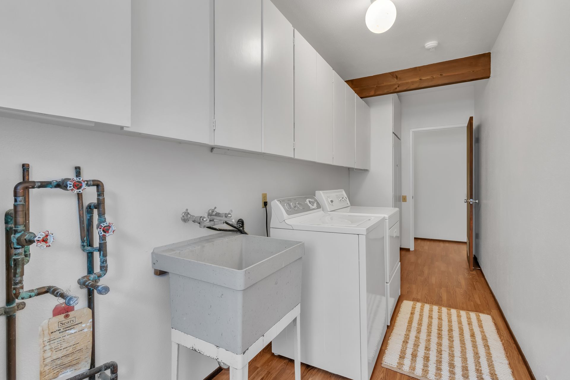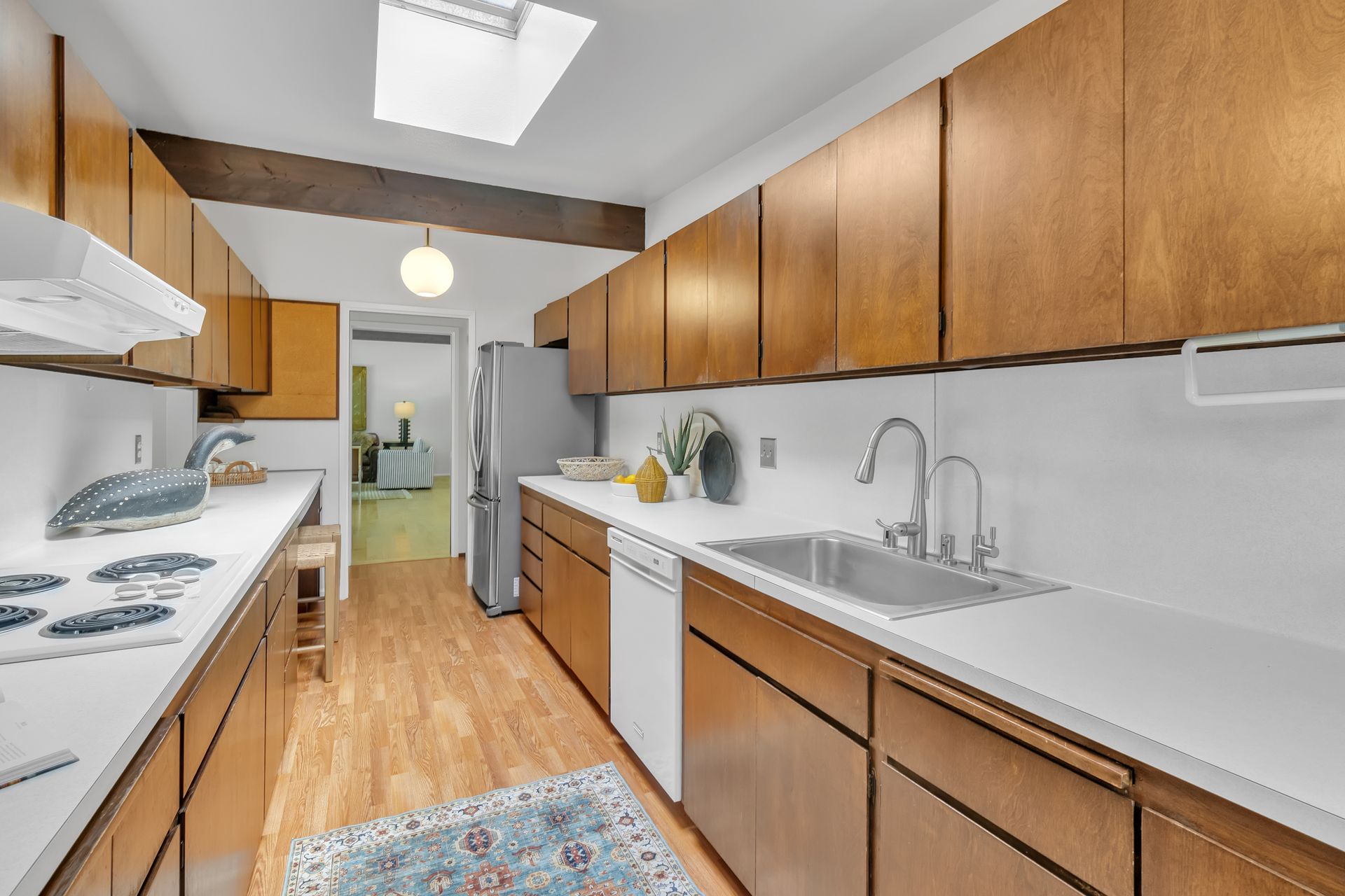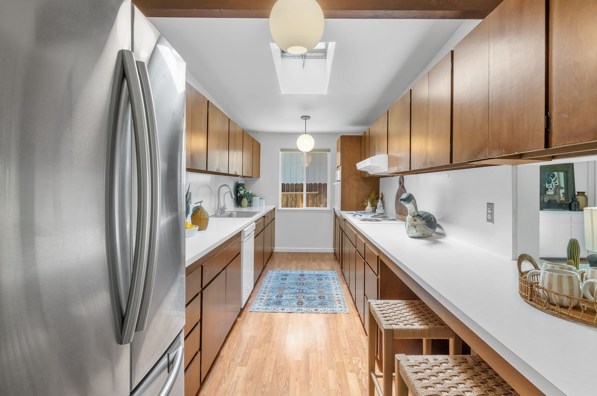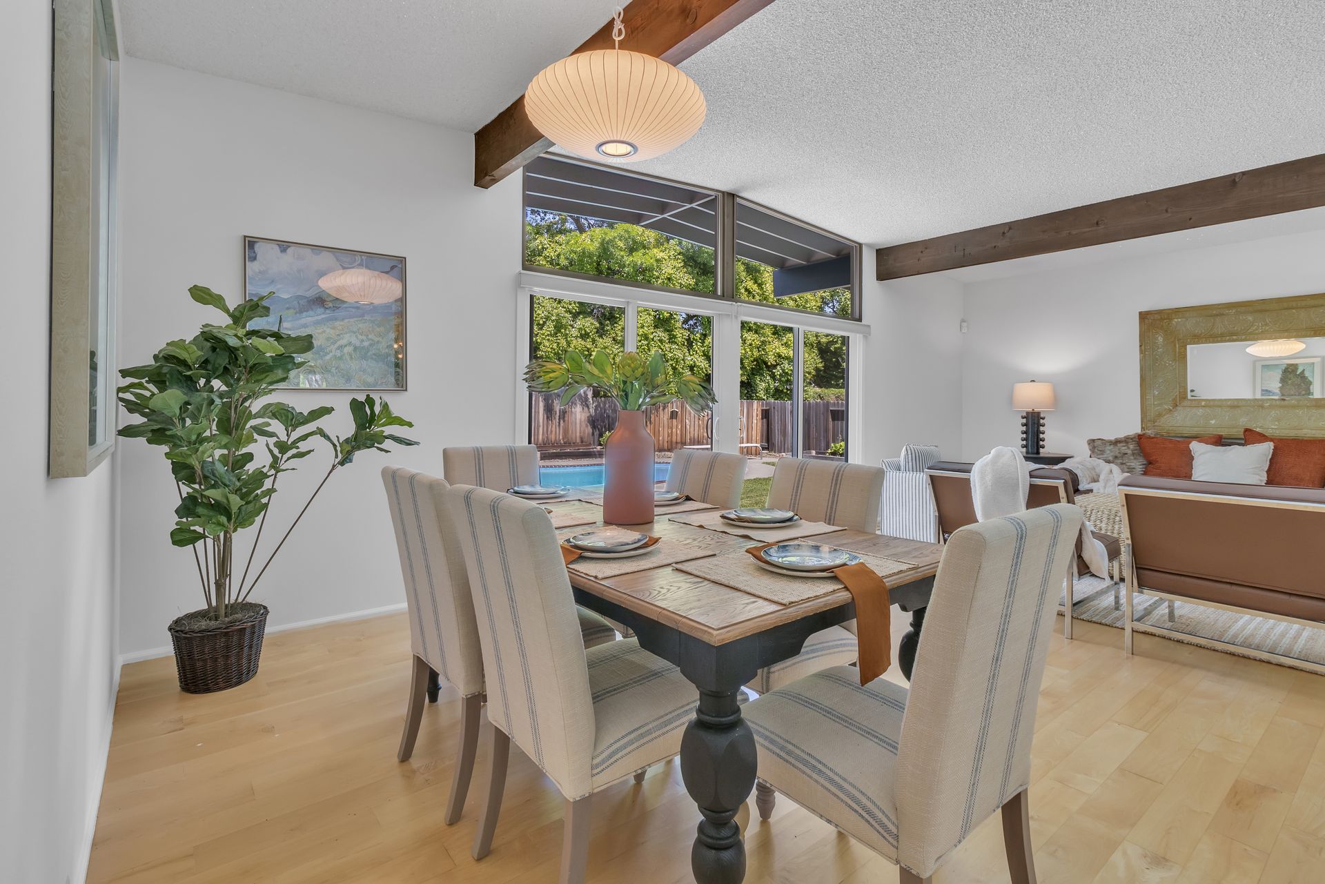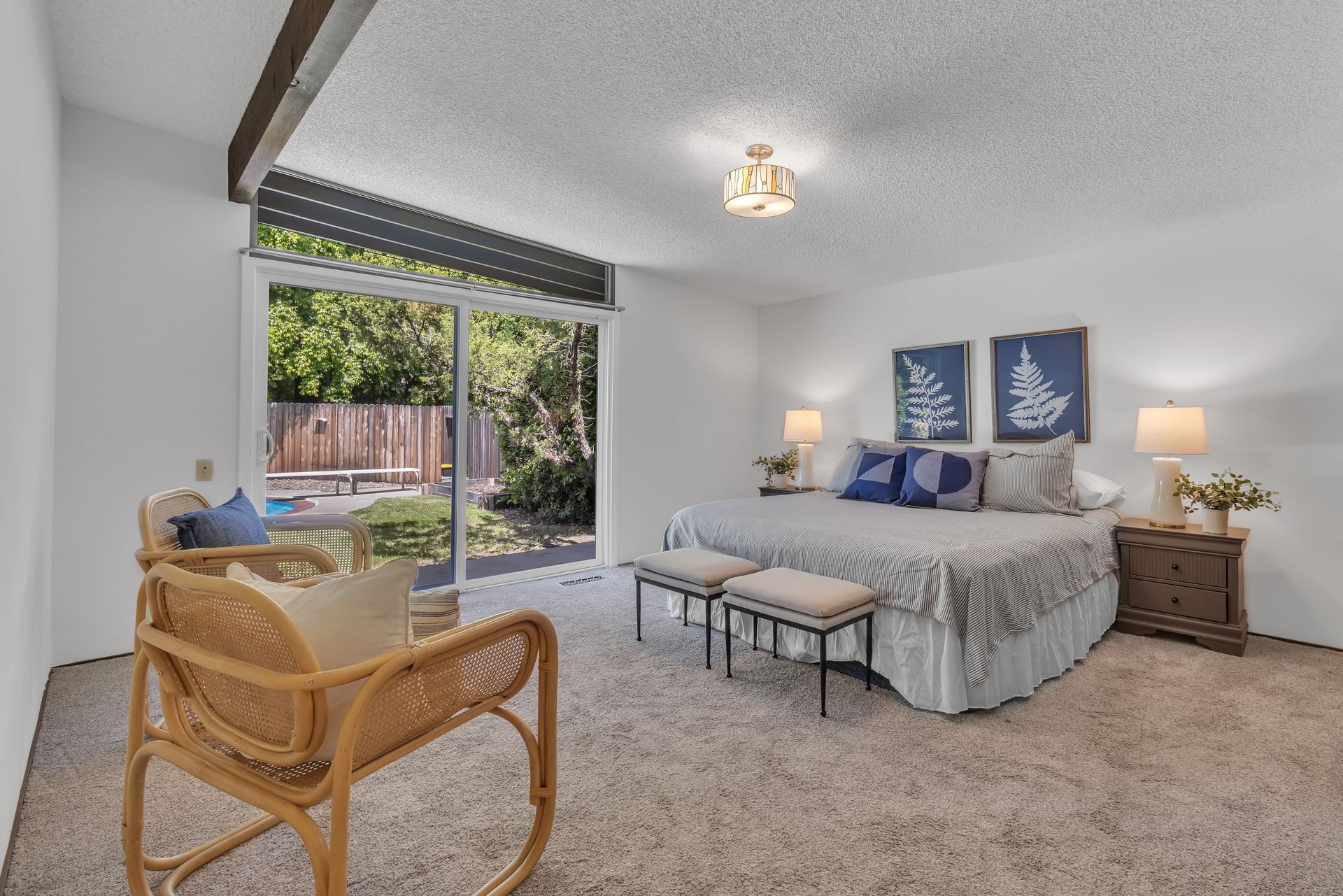 century modern style, this rare “Stretch Streng” offers an expanded floor plan with the perfect blend of architectural significance and retro charm. Set on a generous 0.23 acre lot, this 5 bed, 2.5 bath home delivers 2,566 square feet of thoughtfully designed living space filled with character, light, and indoor-outdoor connection. True to Streng design, the home showcases clean lines, floor-to-ceiling windows, and skylights that flood the interiors with natural light. A statement starburst fixture welcomes you into the entry, setting the tone for the home’s vintage flair. Inside, you’ll find both formal living and family rooms, anchored by a raised hearth fireplace that creates a warm, nostalgic focal point. The retro-inspired galley kitchen embraces its mid-century roots with timeless charm, while multiple access points seamlessly connect indoor spaces to the outdoors - ideal for California living. The spacious primary suite features double closets, and secondary bedrooms are finished with oak hardwood flooring. Step outside to your private backyard retreat, complete with a large in-ground swimming pool with new tile, multiple patios for lounging and entertaining, and raised planter beds ready for gardening. A wood front porch adds to the home’s curb appeal, while the attached two-car garage and large utility/laundry room provide everyday functionality. Perfectly located within walking distance to Willett and Cesar Chavez Elementary, biking distance to UC Davis, and just minutes from downtown, shopping, and freeway access - this is a rare opportunity to own a true piece of Davis architectural history with added space and flexibility.