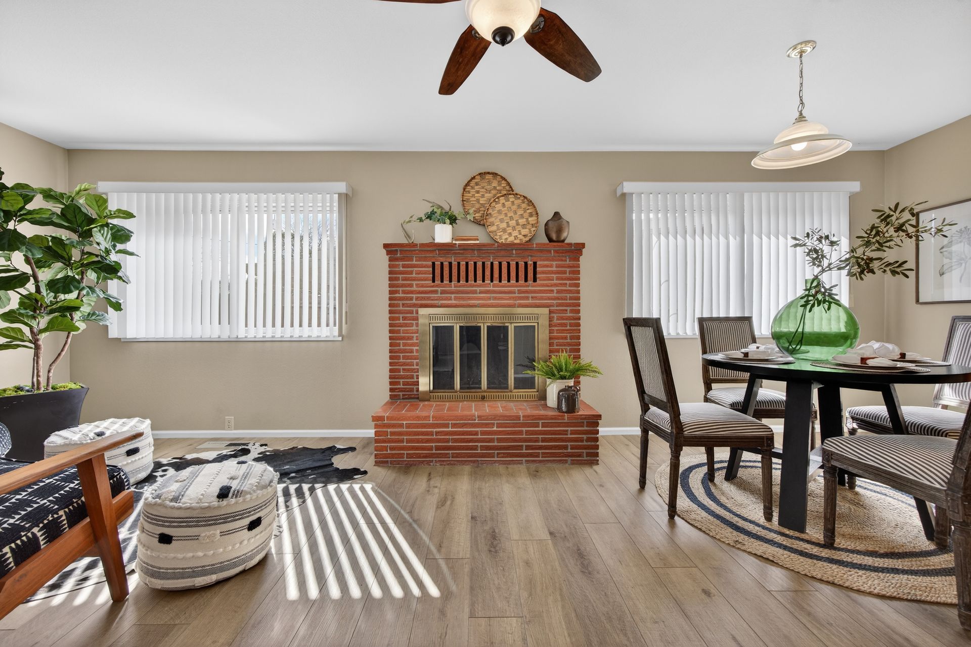 - Cozy brick wood-burning fireplace