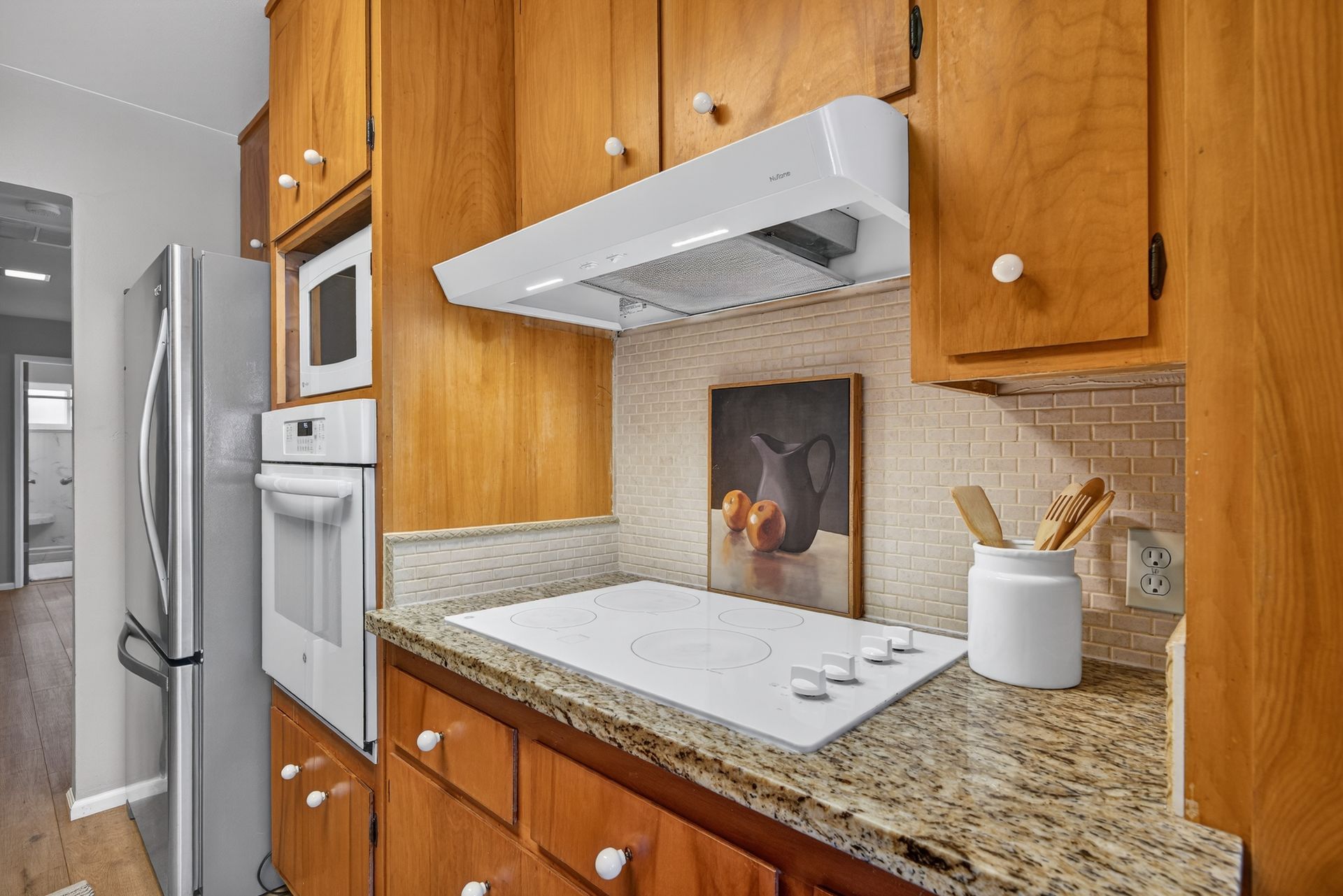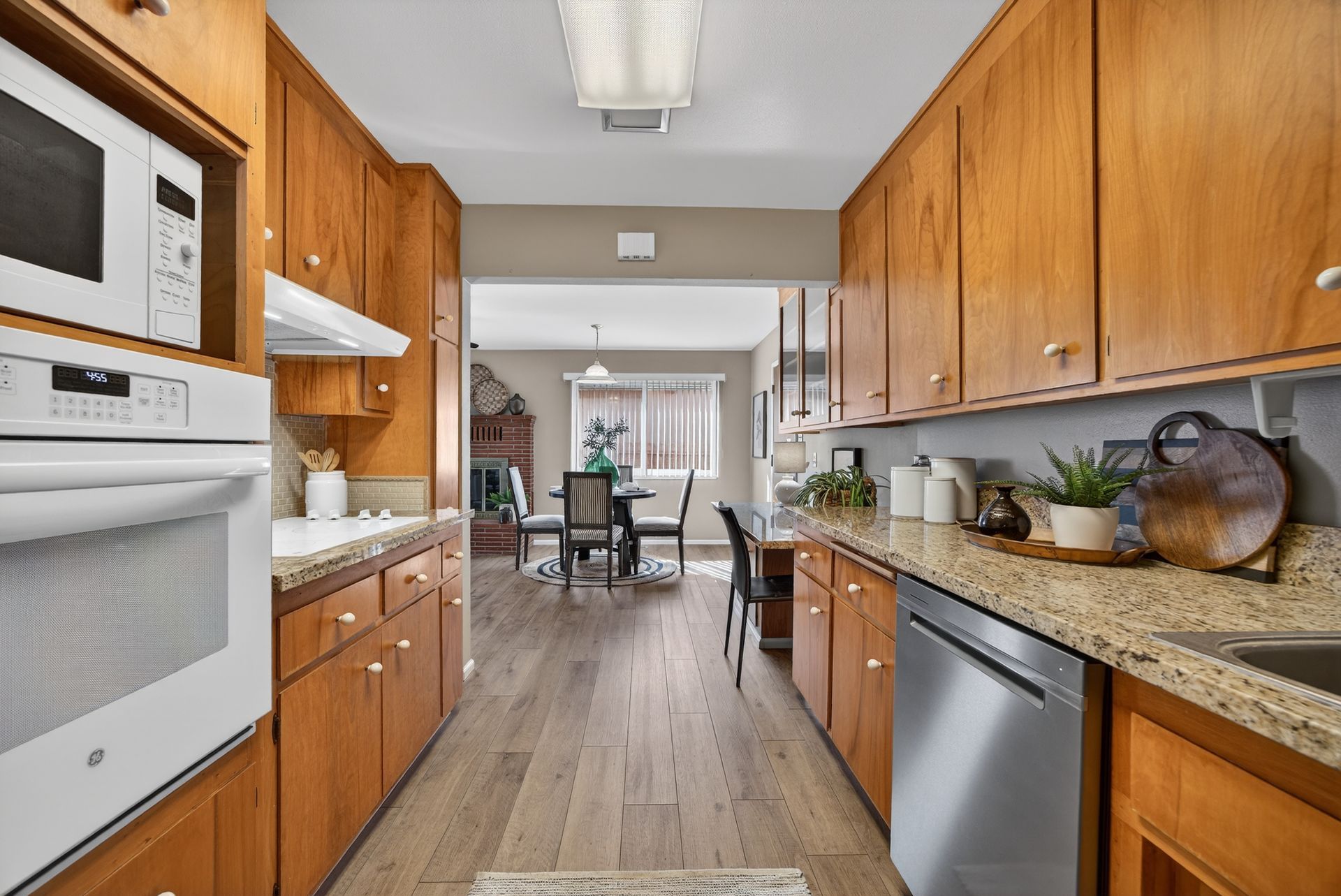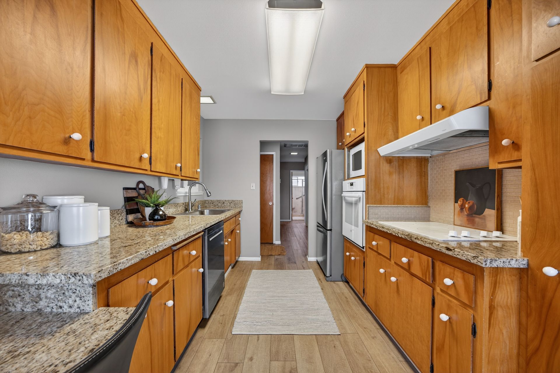 - Galley kitchen with granite countertops