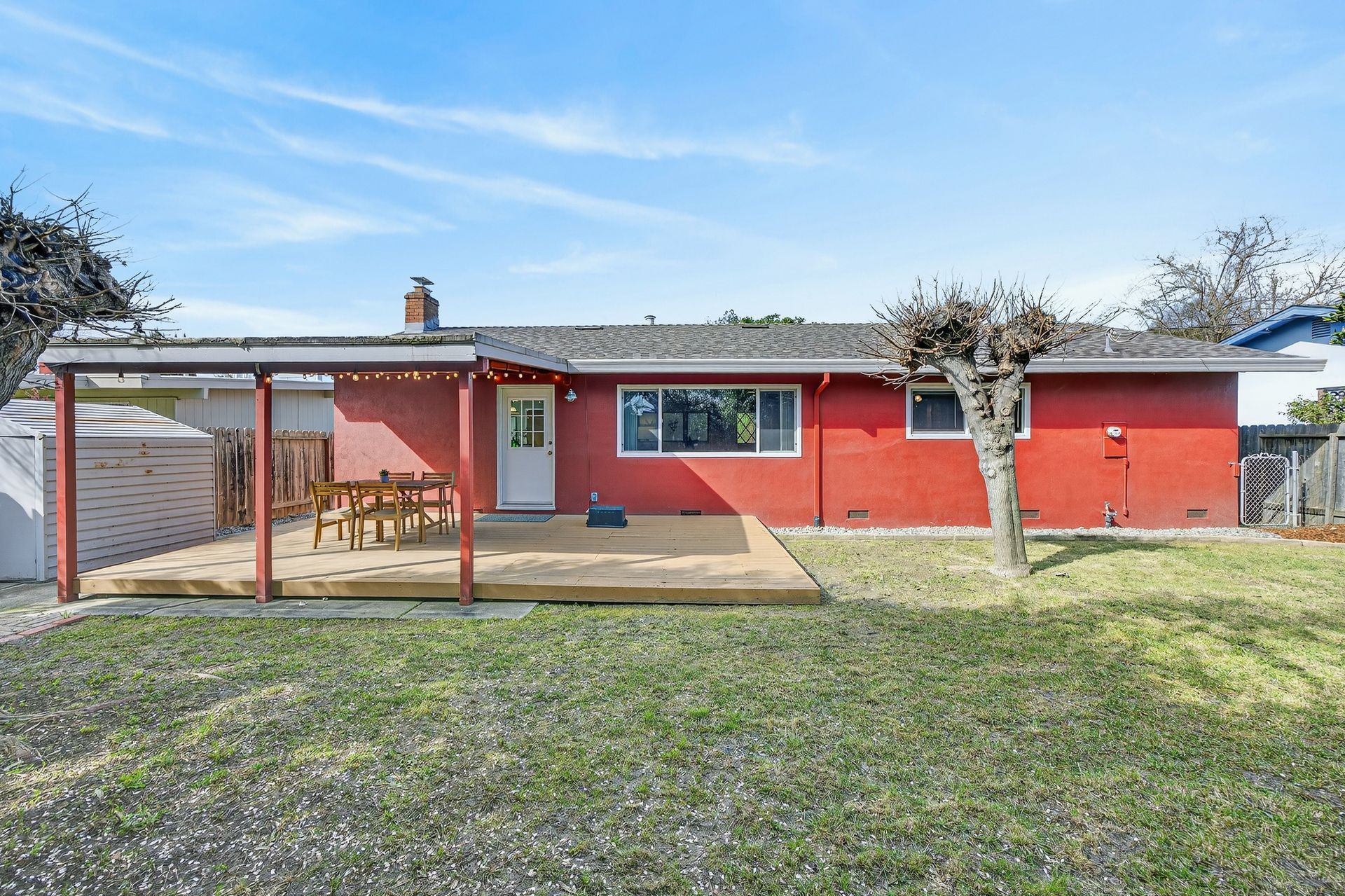 - Covered back deck with holiday lighting